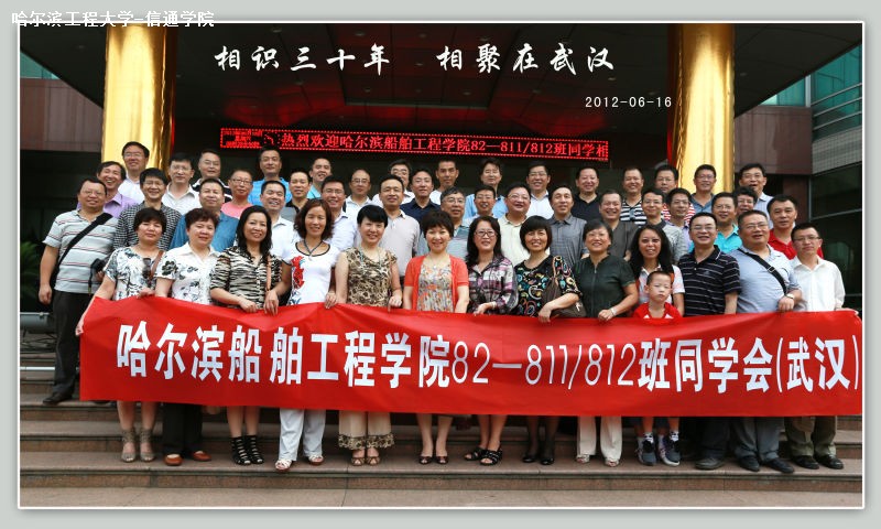 哈船院八系82年招生共2个班:82-811班和82-812班,毕业后两个班都是一起活动,犹如一个班似的亲密。 八系82级毕业合影 82-812班毕业合影 多才多艺、英俊的吴指导带领我们去春游,美好的回忆! 毕业20年重返母校相聚 毕业20年后相聚,与领导和老师合影留念。 82-812班武汉相聚合影留念 82级两个班武汉合影