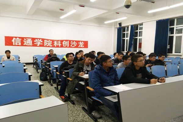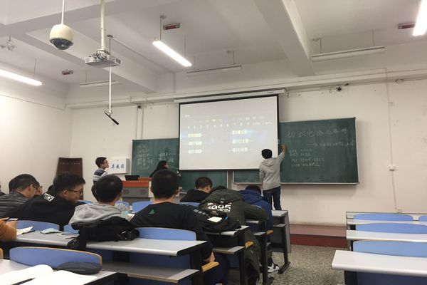 讲座开始,代冲同学以自身为例告诉同学们怎样认识和运用电路元器件,比如多查资料多看书,勤动手实践,理论与实践相结合,才能更好地掌握这些科创利器。代冲以基础知识为引导,为同学们讲解了电阻、电容器、二极管、三极管的基本结构及其作用。他深入浅出,幽默风趣的语言带领同学们体会这些电路元器件的精髓,并用实物图和黑板板书电路图为同学们做出细致的实例讲解,帮助同学们融会贯通。讲座过程中,代冲鼓励同学们主动思考,积极提问,并对一些难点重点进行了阐释。最后,他还列举了蓝桥杯比赛的基本题型,为想要参加比赛的同学们做了进一步引导,并预祝大家学有所成,在竞赛上亮出本领来。
