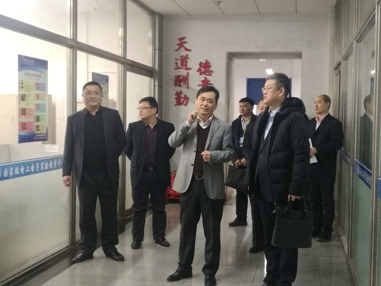 首先在学院领导的陪同下,郑清春走访了我院国家级电工电子教学示范中心,及各实验室。院长刁鸣教授对中心整体情况进行了介绍,并对学院实验教学工作情况、大学生科技创新工作及实验室建设情况进行了详细讲解。