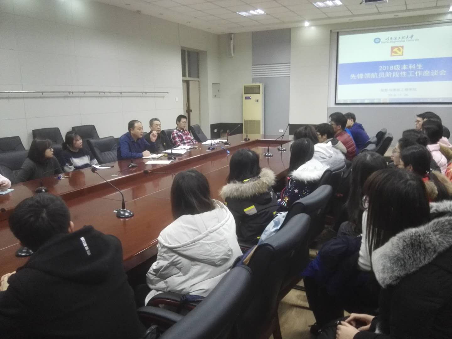 11月26日下午,betway官网在21A303会议室举行2018级本科生“先锋领航计划”阶段性工作座谈会。座谈会由学院党委副书记李树林主持,党委书记王惠民、学工办主任孙安斗、各年级辅导员以及28名2016级先锋领航员参加此次座谈会。此次座谈会旨在对学院启动实施的“先锋领航计划”前一阶段工作进行梳理总结,并对期末复习、学业帮扶等工作进行具体部署。