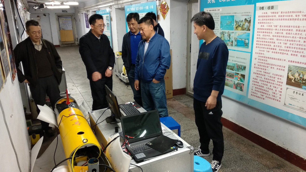 高岩书记首先来到E唯协会,与指导教师刘文智和李海波亲切交谈,了解E唯协会发展历程、历年来取得的成绩和新学期的教学实验规划。高岩书记对E唯协会两位指导教师多年来的工作付出表示慰问和感谢,对取得的成绩表示肯定,并对今后E唯协会的工作提出了建议。