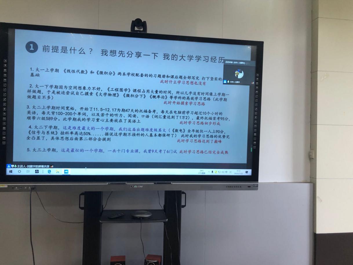 7月22日上午9点,betway官网在21号楼303会议室举办线上优秀毕业生经验分享会,2020届校“学习之星”、已获得清华保送直博资格的2016级优秀毕业生刘震宇为2019级和2018级本科生分享了学习经验及大学成长体会。