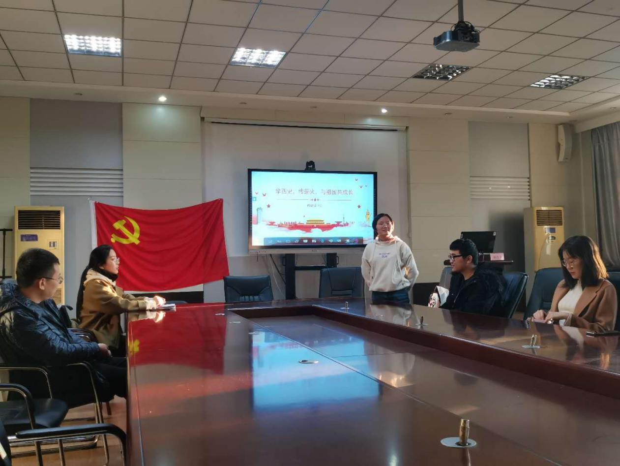 本科生第一党支部以“学四史,传薪火,我与祖国共成长”为题,为支部党员上了一堂意义深刻的党课。党员王睿涵表示:“通过学习,我懂得了从历史中汲取经验和智慧,我将努力打好文化基础、积累专业知识,在党和人民需要的时候挺身而出,奉献自己的力量。”
