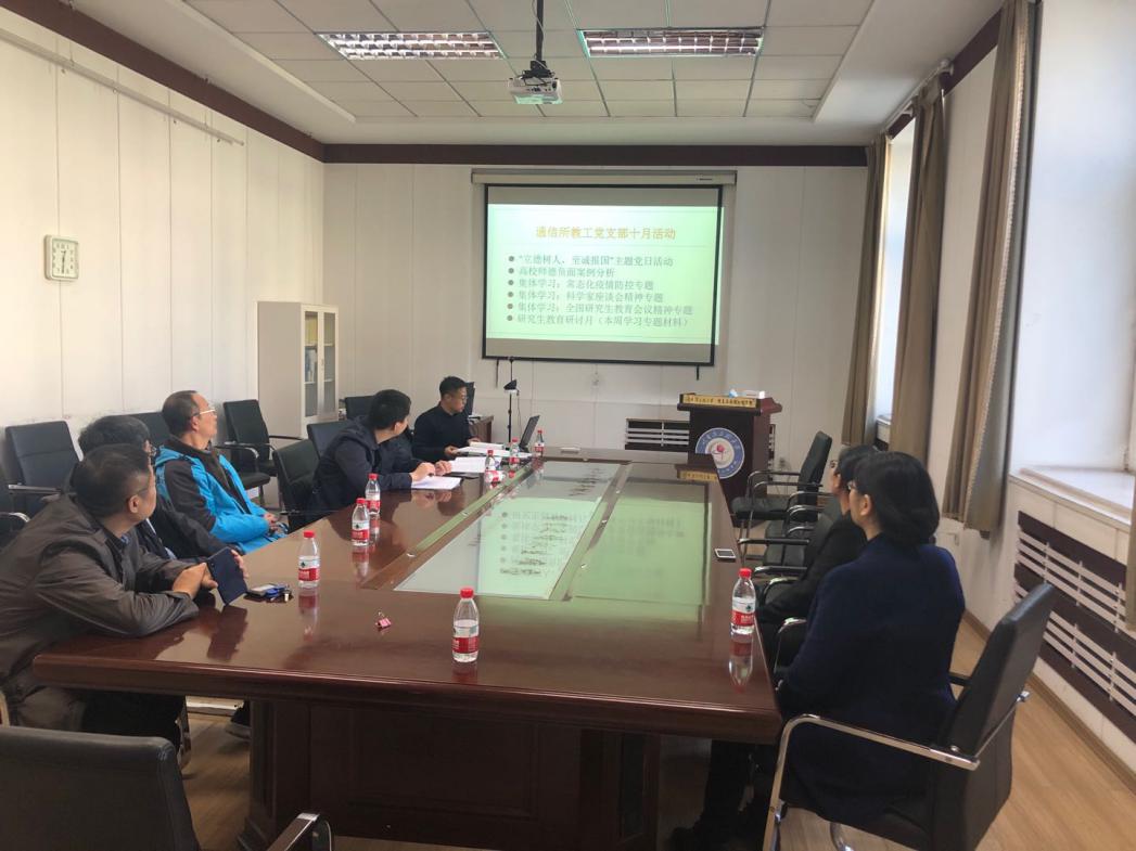 各党支部以“立德树人、至诚报国”为主题,开展主题党日活动,认真学习党史、新中国史、改革开放史和社会主义发展史等内容,同时,集中学习了校党委宣传部印发的《常态化疫情防控专题》《全国研究生教育会议精神专题》《科学家座谈会精神专题》相关学习材料,学习了师德负面清单和失范行为处理办法等文件,集中开展师德师风教育,进一步教育引导广大教师党员坚定理想信念,增强“四个意识”、坚定“四个自信”。