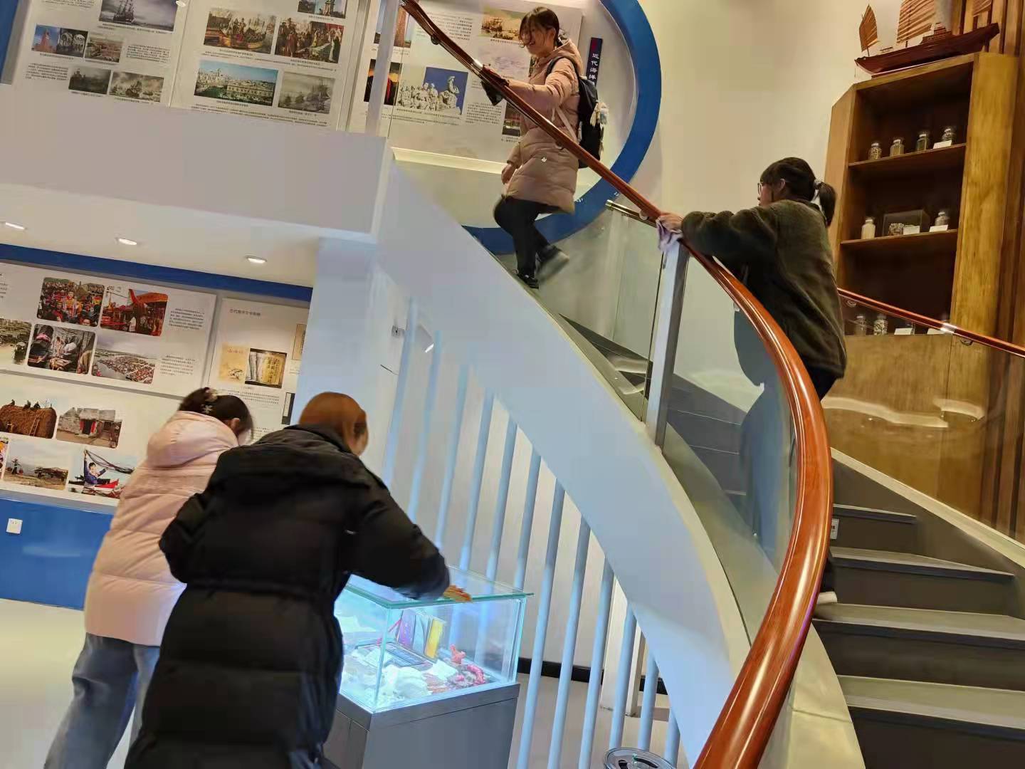 下午5:00,志愿队成员们在海洋馆门前集合并依次进入海洋馆。而后由领队进行了工作的分配,包括扫地,拖地,擦玻璃展柜和楼梯扶手等各项清洁工作。志愿队成员们在得到分配任务后,每个人尽职尽责,为海洋馆的清洁尽了自己一份力,同时为安静祥和的海洋馆增添了一份欢乐与温馨。在打扫的过程中,同学们一边清扫,一边欣赏着馆内的远古鱼类化石,从而更加深入地了解了我校的海洋文化。