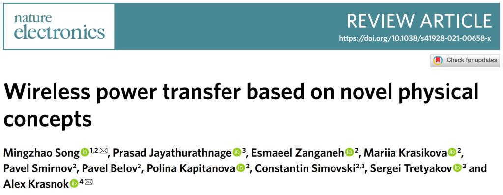 近日,我院宋明肇副教授在国际顶级学术期刊《自然·电子学》(Nature Electronics)发表了综述论文“Wireless power transfer based on novel physical concepts”。