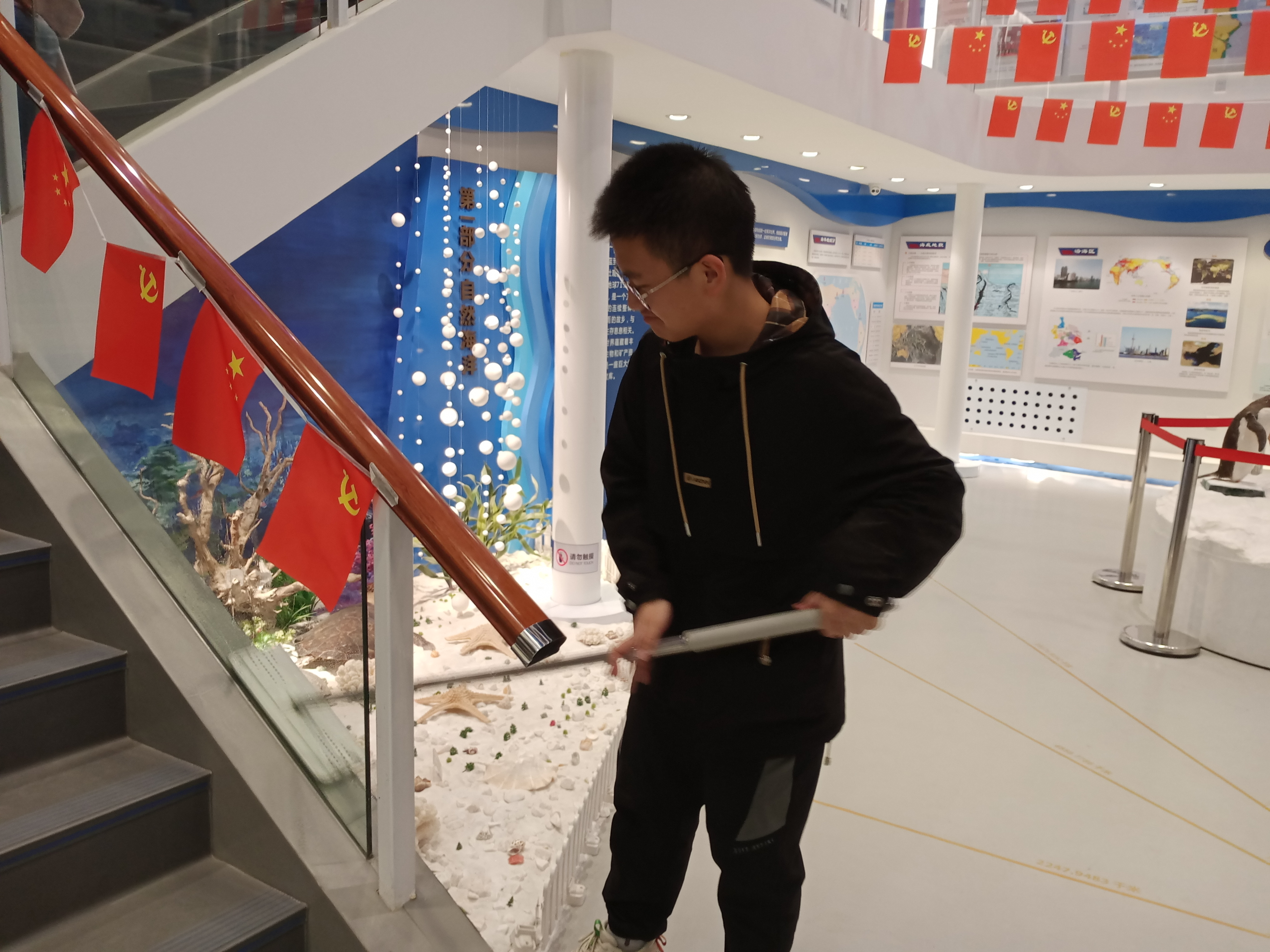 下午4点50分,志愿者服务队成员们就已悉数到场,在海洋馆门口有序进入,成员们在副部宋振安排分工后,协调合作,紧张有序地开展志愿活动(打扫场馆,擦拭玻璃)。成员们认真工作,各司其职,使得海洋馆焕然一新,让拜访者拥有更好的参观体验。在志愿活动中,服务队的成员们也饱览了海洋壮观的画面,见到了各种鱼类化石,更加深了对于哈工程船海特色的理解。