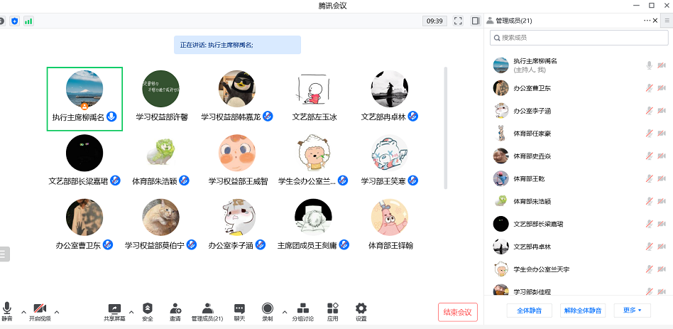 由主席团成员王刻庸带领全体工作人员学习《关于学生会工作人员改进作风服务同学的若干规定》,强调学生会工作人员恪守学生本分,牢记服务宗旨。