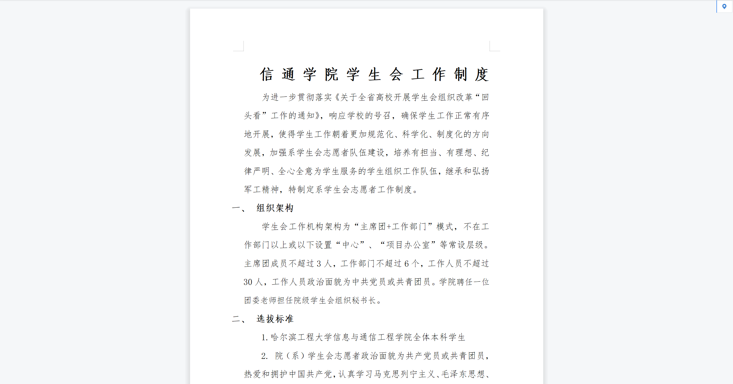2021年九月份,根据《高校院(系)学生会组织深化改革自检自查表》撰写学生会工作制度,并指定志愿者招募管理方法。明确了学生会的工作制度、例会制度、培训制度、财务报销制度、考核制度,使学生会运作更加系统化,规范化。