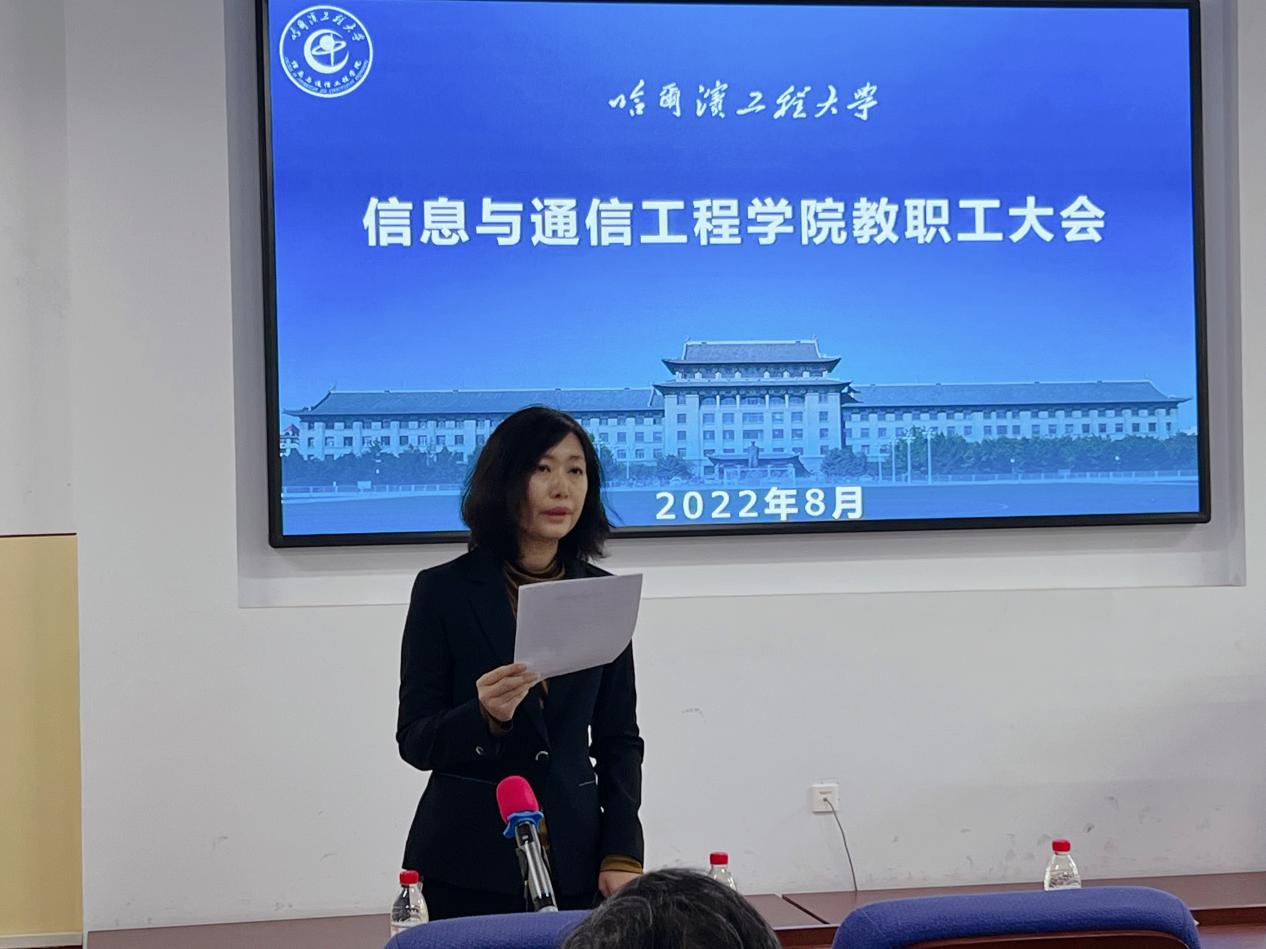 王锐表示,信通学科历史光荣,是支撑学校创建特色鲜明世界一流大学的重要力量。站在新的起点,她将努力做到“三个坚持”。一是坚持用习近平新时代中国特色社会主义思想武装头脑,讲政治、顾大局。尽快掌握学院党委工作、尽快熟悉院情、尽快掌握学院工作节奏;二是坚持聚焦学校一流建设目标,围绕学院中心工作,勇担当、善作为。与学院班子成员一道,努力落实好学校党委部署的各项任务、努力完成好学院“十四五”规划好的各项蓝图、努力解决好师生面临的各种问题难题;三是坚持共产党人政治本色,守清廉、树正气。带头严守师德师风各项要求、带头为学院改革发展和师生成长成才营造风清气正的政治生态、带头传承创新学院文化与优良学风院风,为学校“双一流”建设作出新的更大贡献。