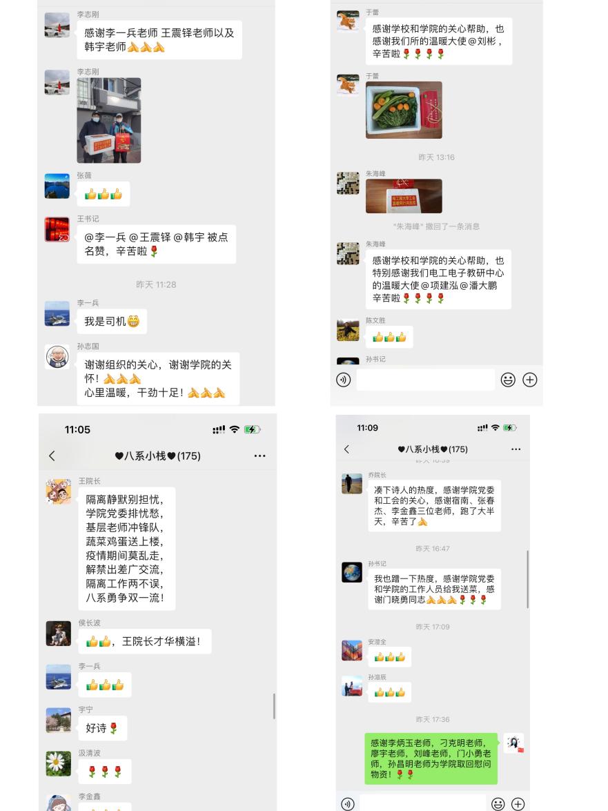 由于疫情隔离在家,面对买菜难、买菜贵等现实问题,在接到学院送来的温暖那一刻,各位老师纷纷表示感谢,并保证一定听从抗疫指挥,圆满完成隔离任务!