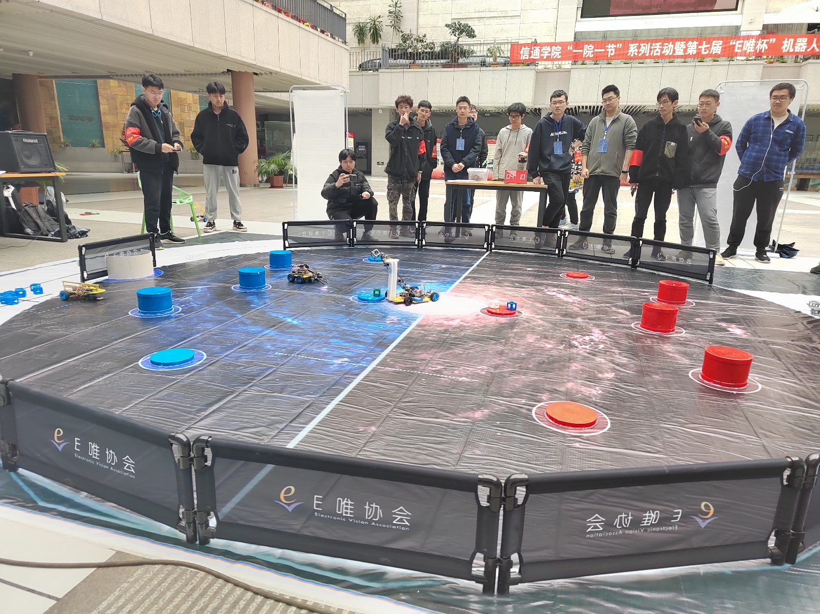 在比赛前,E唯协会举办了一系列配套活动和课程,包括技术培训、交流研讨等。同时邀请到多位学长和老师担任评委,从机械构造、电路设计及规划,程序控制等多个方面对参赛作品进行了评估和点评,为参赛选手指出了问题并提出了改进思路。