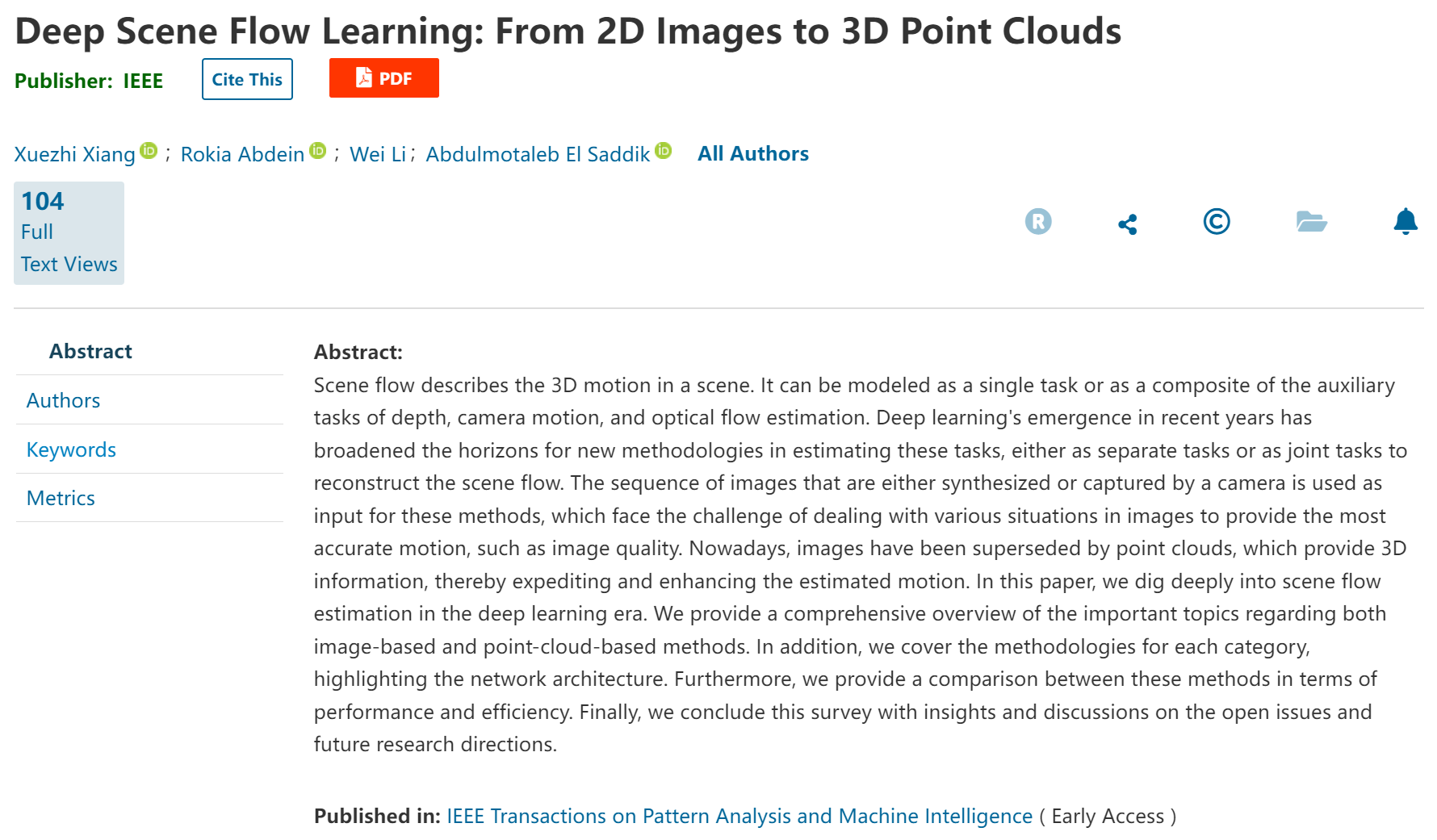 近日,betway西汉姆联官网betway西汉姆联官网教师项学智作为第一作者,在世界著名的人工智能顶级学术期刊《IEEE模式分析与机器智能汇刊》(《IEEE Transactions on Pattern Analysis and Machine Intelligence》)上发表学术论文“深度场景流学习:从2D图像到3D点云”(“Deep Scene Flow Learning: From 2D Images to 3D Point Clouds”, IEEE-T-PAMI, DOI: 10.1109/TPAMI.2023.3319448)。