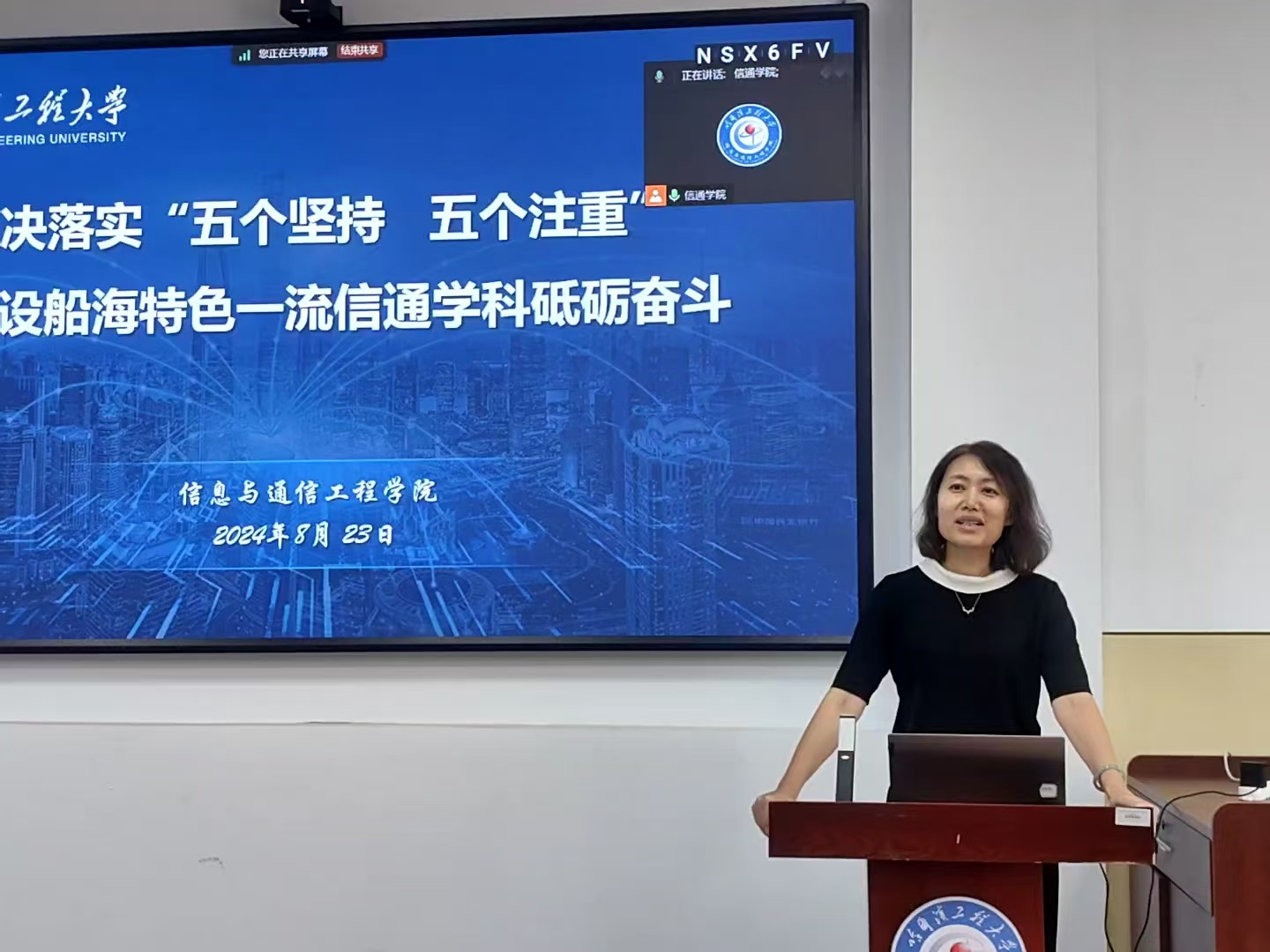 王锐书记深入剖析“五个坚持、五个注重”的深刻内涵并作出部署。一是“坚持特色发展,注重交叉融合”。要突出学院特色,用好学科交叉融合“催化剂”,进一步凝练具有船海特色的信通学科发展方向;二是“坚持学科牵引,注重学术为魂”。学院要建立以学科发展为导向的资源统筹配置机制,突出学科导向,充分发挥各类资源的集聚效应和放大效应;三是“坚持人才强校,注重分类卓越”。要持续不断地加大高层次人才引培和支持的力度,以国家级人才为牵引,建强学院科研团队,畅通各类人才成长发展通道;四是“坚持开放办学,注重提质增效”。做好面向国际、国内的开放办学,争取新的资源、找到新的增长点;五是“坚持制度创新,注重统筹兼顾”。要坚持以制度建设为主线,持续不断地开展约束性制度、激励性制度、引导性政策三种类型重要制度的创新。