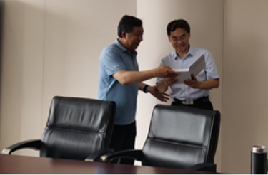 赵春晖一行参观了中国科学院空天信息创新研究院科技成果展,赵春晖向张兵等赠送了刚出版的“十四五”时期国家重点出版物出版专项规划项目、工业和信息化部“十四五”规划专著《高光谱遥感图像智能分类与检测》,对空天院的热情接待表示感谢并邀请空天院各位领导专家来校交流指导。