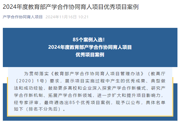 近日,教育部公布了 2024年度产学合作协同育人项目优秀案例评选结果,betway西汉姆联官网光电所单明广教授负责的《基于飞腾嵌入式系统的创新创业教育改革实践》项目(合作企业:飞腾信息技术有限公司)脱颖而出,成功入选 “创新创业教育改革” 4个范例之一。该项目紧密结合新工科人才培养需求,深度融合校企资源,创新育人模式,在多方面取得了显著成效。