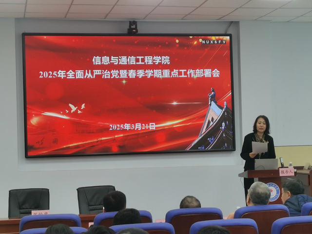 王锐书记传达了学校2025年党的建设、党风廉政建设工作会议暨警示教育大会精神,以《以高质量党建引领高质量发展 筑牢红色信通育人阵地》为题讲授党课,并围绕“始终坚持党的全面领导”“持续强化党的思想领航”“大力发扬党的组织优势”“巩固党纪学习教育成果”“发扬党的优良工作作风”五方面对2025年全面从严治党工作进行部署。王锐书记强调,广大党员干部一是要深入学习领会习近平总书记关于党的建设和党的自我革命的重要思想,切实增强全面从严治党永远在路上的政治自觉。二是要深刻认识到当前党风廉政建设和反腐败斗争形势依然严峻复杂,从警示案例中汲取教训、举一反三。三是要持续推动党建与业务工作深度融合,不折不扣将党中央和学校党委各项决策部署落到实处,全力保障习近平总书记视察学校重要讲话精神贯彻到底,谋划好“十五五”开篇布局。