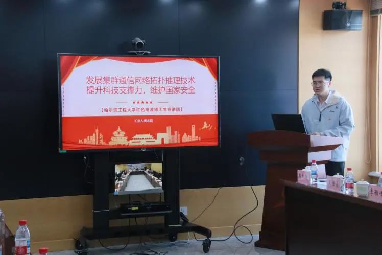 “红色电波”学生宣讲队成员周志超以“提升科技支撑力,维护国家安全”为题,结合案例讲述了博士研究生如何在提升科技支撑力、维护国家电磁安全领域发挥专业优势。