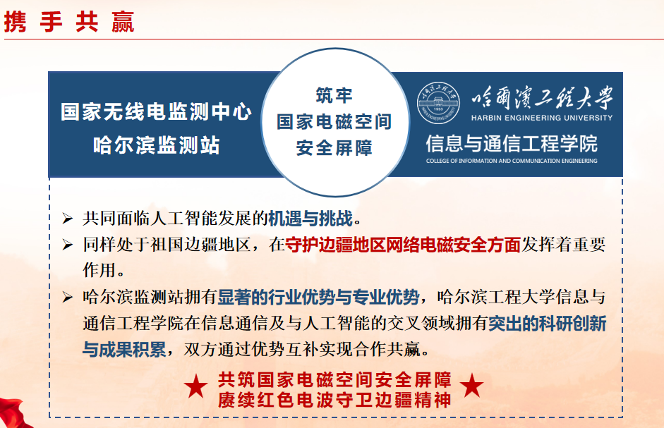 在第十个全民国家安全教育日到来之际,为深入贯彻落实习近平总书记关于加强国家安全教育的重要指示批示精神,进一步增强师生的国家安全意识,4月15日,betway西汉姆联官网与国家无线电监测中心哈尔滨监测站联合开展“坚持国家安全观 筑牢边疆电磁空间安全屏障”主题党日活动。双方通过座谈交流、实地参观、实践体验等形式,共话电磁频谱领域前沿发展,共筑无线电安全防线。betway西汉姆联官网党委书记王锐,国家无线电监测中心哈尔滨监测站党支部书记、站长孙鹏飞,betway西汉姆联官网党委副书记孙安斗、青年教师党员代表、通信所研究生第三党支部学生党员参加活动。