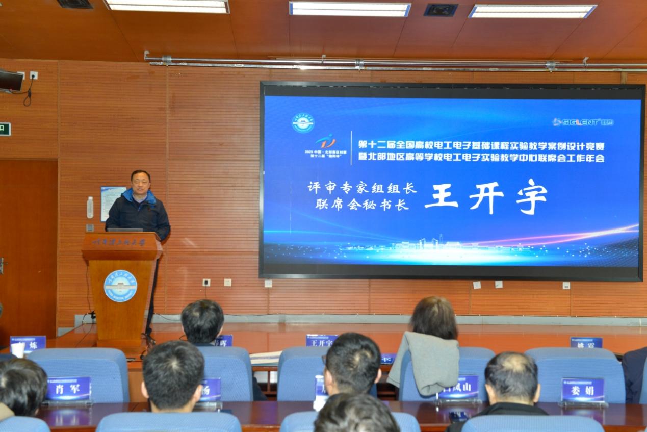 姚震介绍了学校的发展建设情况和“三海一核”办学特色。他指出,学校深入贯彻落实习近平总书记来校视察重要讲话重要指示精神,践行“五个坚持、五个注重”办学原则,一体推进教育发展、科技创新、人才培养,充分发挥7个国家级实验教学示范中心支撑作用,全力推动实践育人,持续擦亮学校“可靠顶用、拔尖创新”的新时代“工学”人才培养品牌。他表示,本届北部地区电工电子实验教学中心联席会工作年会以“资源共享、协同共生”为关键词,邀请领军企业将产业前沿技术转化为教学项目,让课堂与生产线“同频共振”,搭建起一个开放协同的“朋友圈”,为北部四省的实验中心提供了共谋发展的平台。他希望,以此次大赛为契机,各学校实验中心互学互鉴、互相促进,共同为培养适应新时代发展的人才注入新动能。