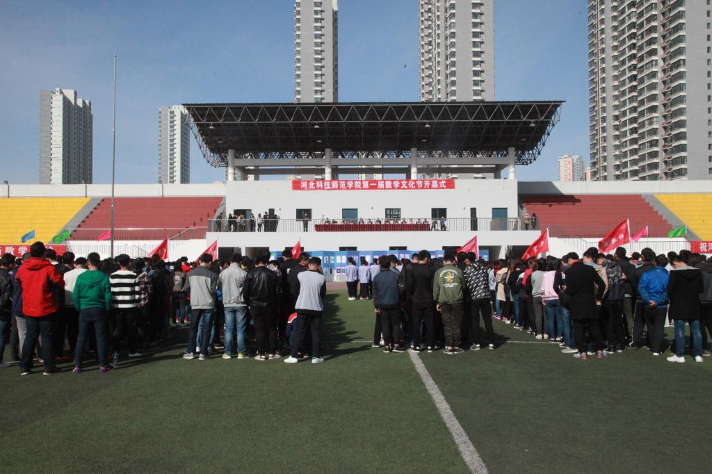 为展示数学之美,传播数学文化,弘扬数学精神,2017年4月9日,由万象城教务处、学生处、团委主办,数学与信息科技学院承办的第一届数学文化节开幕式于秦皇岛校区操场举办。学院邀请河南科技学院数学科学学院马宝林副教授作为嘉宾出席了开幕式,学校党委常委李佩国、主办部门相关负责人、学院班子成员及财经学院、城市建设学院、工商管理学院、物理系、体育系等各学院相关工作负责人参加了开幕式。