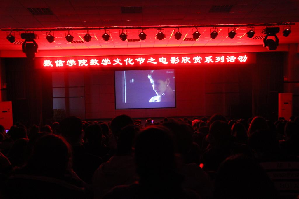 9日晚7点,学院在多功能厅举办了第一届数学文化节之数学电影之夜活动。此次活动,共有近三百余名来自于全校各院的师生参与,共同观看了数学题材影片《极限空间》,影片讲述了四位互不相识的数学家参加一个神秘聚会,为了解决所谓的旷世谜题而聚集一起,结果却发现进入了一个圈套,密室的四面墙壁会因四周液压器的作用而不断向中间收缩,所有的谜题都要等待观众自己来解开。