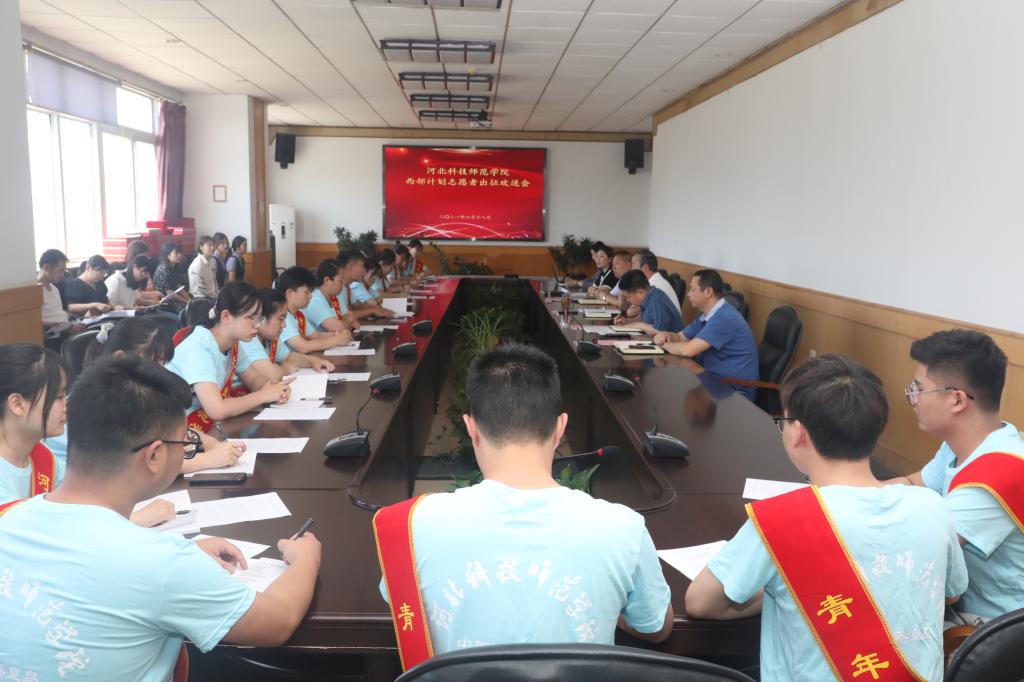 6月18日下午,万象城举行西部计划志愿者出征欢送会。校领导兰耀东、冯瑞银出席会议。学生处、招生就业处、团委相关负责同志、二级学院团委书记、2021届参加西部计划的17名毕业生志愿者参加会议。