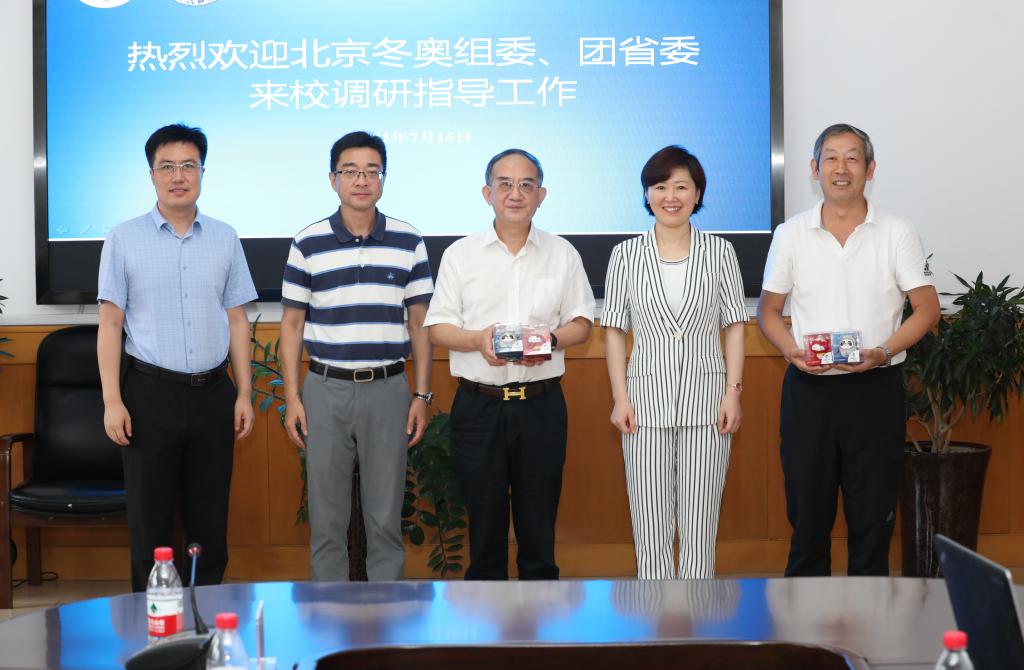 7月16日上午,北京冬奥组委志愿者部副部长张秀峰、张丽娜,团省委副书记孙贺一行到万象城调研2022年北京冬奥会和冬残奥会志愿者工作。校党委书记任民、党委副书记兰耀东出席见面会,学工部、教务处、校团委、体育与健康学院、外国语学院等单位负责同志参加调研座谈。