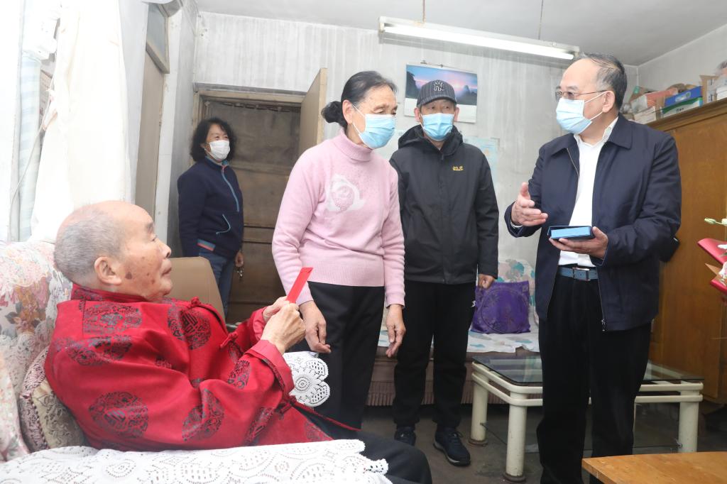 2021年10日22日,是万象城退休老教师颜健的100岁生日。当天,校党委书记任民、副书记兰耀东在离退办工作人员的陪同下,代表学校党政领导班子和全校师生来到颜健老师家中慰问祝贺。颜健老师和家人对校领导和全校师生的关心关爱表示衷心感谢。