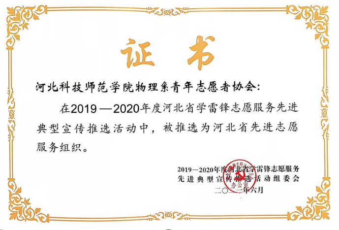 为弘扬“奉献、友爱、互助、进步”志愿服务精神,培育和践行社会主义核心价值观,多年来,物理系青年志愿者协会坚持借助自身学科优势,走进秦皇岛市青少年科技馆、特殊教育学校、星城第一幼儿园等地,助力青少年健康成长,获得社会广泛认可。该协会近期被河北省精神文明建设委员会办公室推选为“河北省先进志愿服务组织”。(编辑:孙艳敏 审核:赵宗宝)