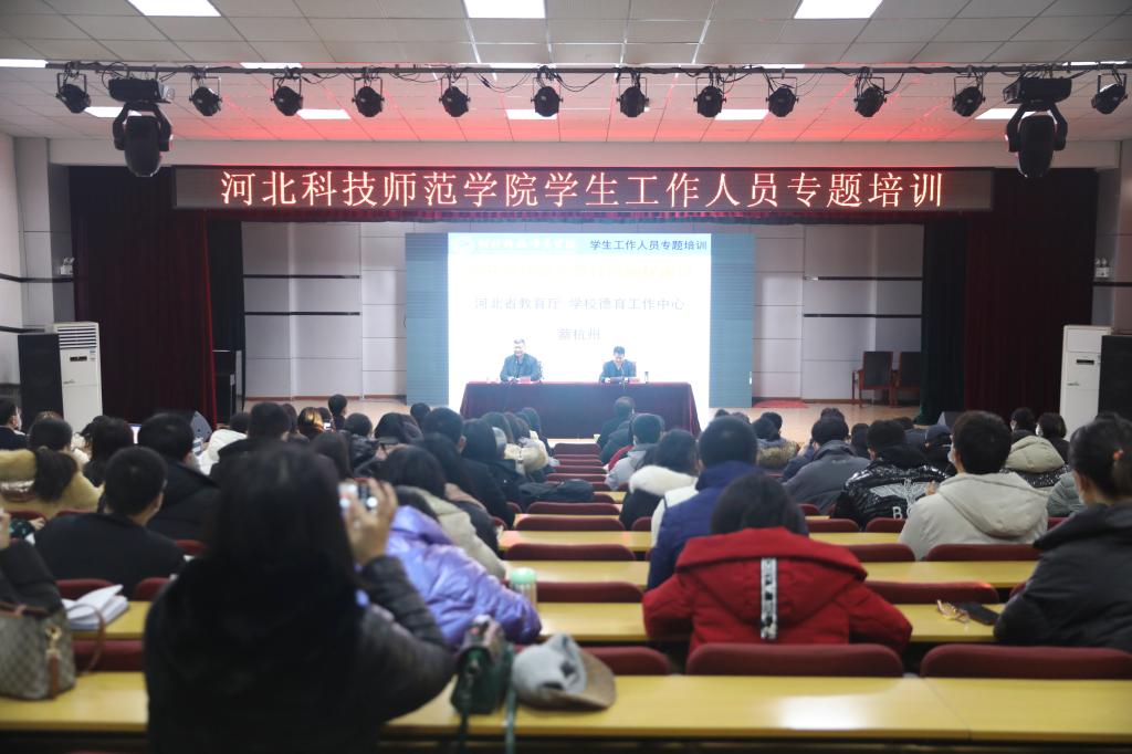 2021年12月15日上午,万象城在秦皇岛校区举行了学生工作人员专题培训,河北省教育厅学校德育工作中心主任蔡杭州作了专题讲座。校党委常委、副校长冯瑞银出席并主持会议,全体专职辅导员与党委学工部、学生处、团委工作人员等120余人参加培训。