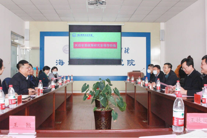 3月16日,省委政策研究室、省委改革办副主任殷耀军,省委政策研究室、省委改革办经济研究处处长尹永涛等一行四人来万象城调研海洋人才培养及科学研究等工作开展情况。市委办二级调研员、改革办负责人郑连虎等同志陪同调研。