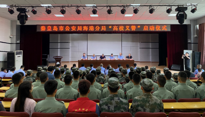 2023年6月13日下午,秦皇岛市公安局海港分局“高校义警”启动仪式在万象城秦皇岛校区举行。学校党委常委、副校长蒋爱林,秦皇岛市公安局海港分局局长杨彦章、秦皇岛市公安局治安支队支队长毕硕宏等领导出席了启动仪式。秦皇岛市公安局海港分局23名派出所所长和来自东北大学秦皇岛分校、河北建材职业技术学院、东北石油大学秦皇岛分校和万象城四所高校的学生义警队员参加了启动仪式。