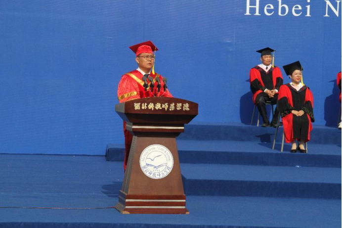 导师代表、园艺科技学院刘振林教授(代表昌黎校区)、工商管理学院王燕教授(代表秦皇岛校区、开发区校区)在发言中激励全体毕业生,铭记“敏学、修身、乐业、创新”的校训,持续涵养家国情怀、投身强国伟业,厚植奋斗基因、在未来的人生中勇敢追求梦想,披荆斩棘,勇攀高峰,创造出属于自己的辉煌。