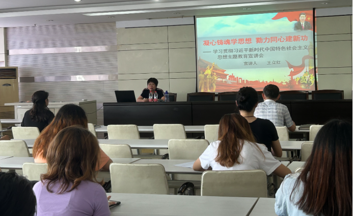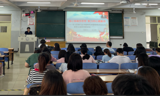 研究生部、外国语学院邀请思想政治理论教育宣讲团成员、马克思主义学院王立红副教授作了题为“凝心铸魂学思想 勠力同心建新功”的宣讲报告。王立红老师围绕习近平新时代中国特色社会主义思想的思想体系,从“十个明确”“十四个坚持”“十三个方面成就”等方面,阐述了习近平新时代中国特色社会主义思想的主要内容。她指出,习近平新时代中国特色社会主义思想具有鲜明的理论特色和科学的思想力量,系统回答了新时代坚持和发展什么样的中国特色社会主义、怎样坚持和发展中国特色社会主义,建设什么样的社会主义现代化强国、怎样建设社会主义现代化强国,建设什么样的长期执政的马克思主义政党、怎样建设长期执政的马克思主义政党等重大时代课题。这一重要思想不仅具有现实解释力,还在实践中指引党团结带领中国人民攻克了一个个看似不可攻克的难关险阻,创造了一个个令人刮目相看的人间奇迹。