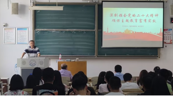 教育学院、数学与信息科技学院邀请思想政治理论教育宣讲团成员、党委宣传部部长赵宗宝同志作题为“深刻领会党的二十大精神,确保主题教育富有实效”的宣讲报告。赵宗宝同志从党的二十大召开的重大意义、取得的重大成果;新时代十年和最近五年取得的重大成就;深入学习领会新时代中国特色社会主义思想涵盖的立场、观点和方法,深刻学习中国式现代化的科学概念和丰富内涵等九个方面深刻解读了党的二十大精神。