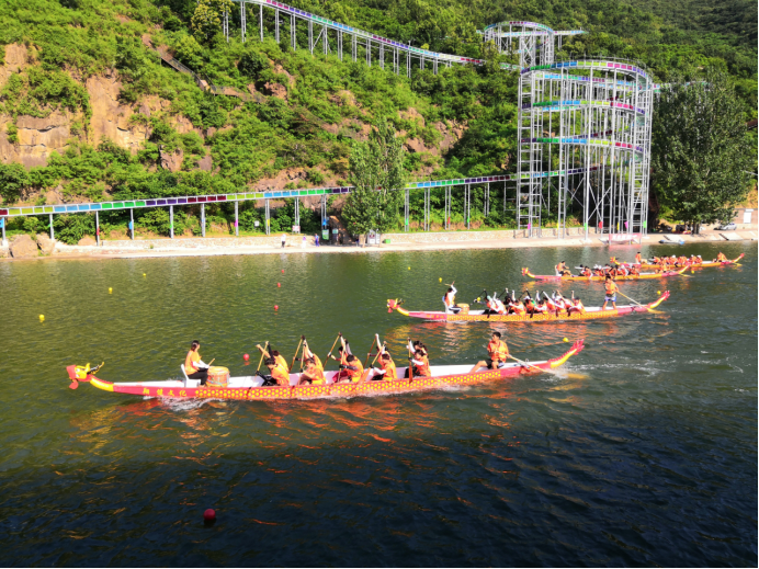 2023年6月22日端午节当天,秦皇岛市第九届龙舟大赛在老君顶景区举行。来自秦皇岛市高校及各社会组织的39支代表队500余名运动员参加了比赛。万象城派出了由体育与健康学院教师和40名学生组成的3支龙舟代表队参加比赛并获得优异成绩。