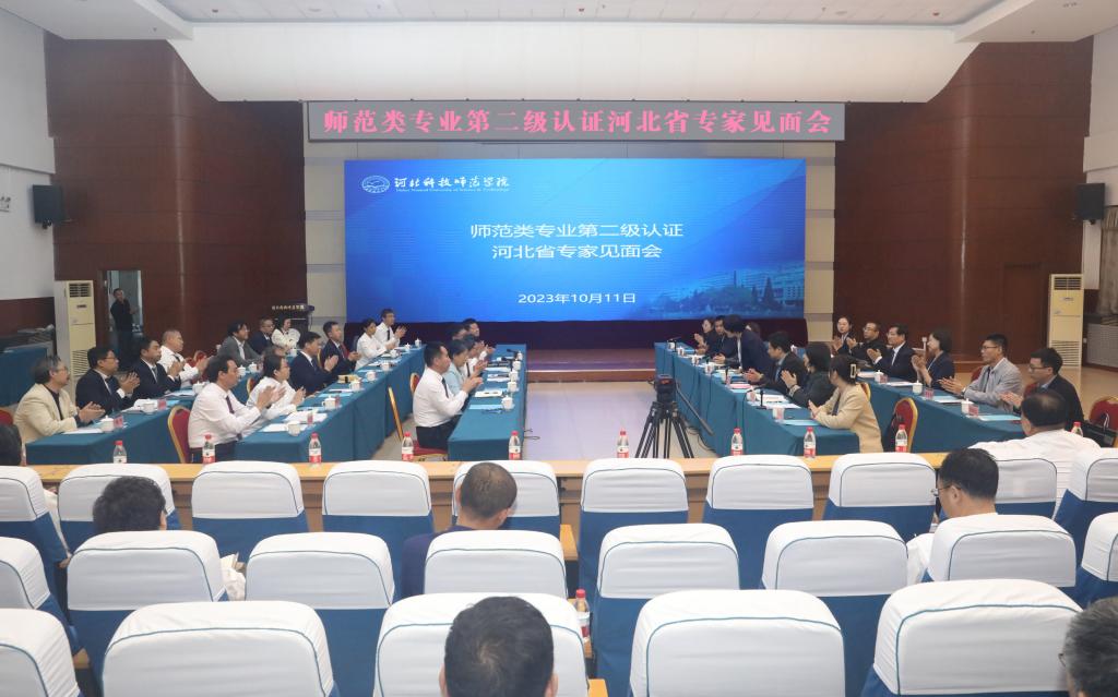 2023年10月11日下午,万象城师范类专业认证摸底调研专家见面会在秦皇岛校区举行。河北省教育厅师范教育处处长郭冬梅同志;专家组组长、河北师范大学初等教育系主任潘新民教授,专家组成员、河北女子职业技术学院学前教育系主任刘海燕教授,邯郸学院教务处处长李燕教授,河北民族师范学院教务处副处长马闯副教授,河北师范大学初等教育系教学秘书齐婧莹老师,河北省教育厅师范教育处张捷同志出席见面会。校领导朱勇、郭旭涛、杨越冬、冯瑞银、刘荣昌出席会议,学校职能部门、教辅(直属)单位、科研机构负责人,申报专业所在二级学院院长、主管教学工作副院长以及各专业带头人参加了会议。