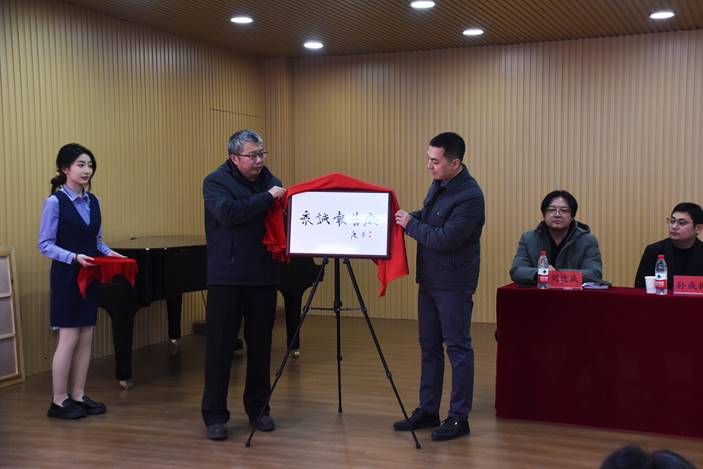 仪式上,韩玉龙董事长和蒋爱林副校长共同为阶梯教室重装后更名揭牌,艺术学院原阶梯教室正式更名为“众城报告厅”。