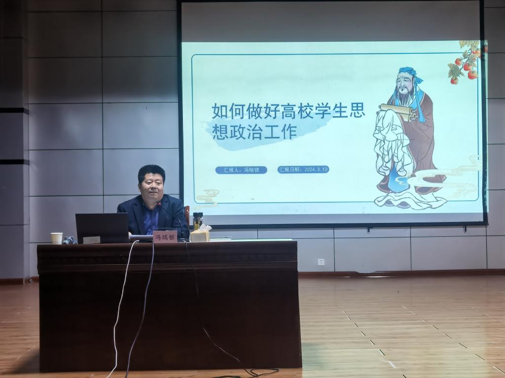 2024年3月10日,由党委学工部、学生处主办的2024年第一期学生工作人员培训班在秦皇岛校区举行。校党委常委、副校长冯瑞银出席培训班并结合学校高质量发展作专题讲座。全校辅导员(班主任)和党委学工部、学生处、团委工作人员等200余人参加了培训班。