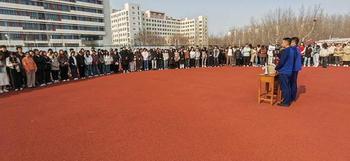 培训会后,安全工作处工作人员、属地消防救援中队的消防队员指导师生员工开展使用二氧化碳灭火器、消防水带水枪灭火、模拟火场应急逃生的实操演练活动。