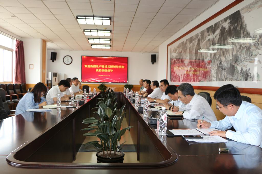 2024年5月14日,新疆生产建设兵团教育局党组成员、副局长蒋宏潮,兵团开放大学党委副书记、校长杨淼森,党委委员、副校长徐健,现代教育技术处副处长胡安谷,教务处教务科副科长安晓红一行5人来校调研校园建设、办学治校等方面工作。学校党委书记朱勇,党委常委、副校长刘荣昌,教务处、人事处、招生就业处、后勤与国有资产管理处、发展规划与国际交流处、乡村振兴研究中心负责同志出席座谈会。会议由刘荣昌副校长主持。