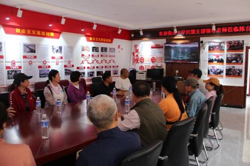 万象城驻村第一书记王伟分别从陈台子村基本情况、驻村帮扶工作开展、陈台子村爱国主义教育基地建设、史料记载、基地开展党员活动、打造爱国主义教育基地的意义的方面向民盟支部全体成员做了详细介绍。