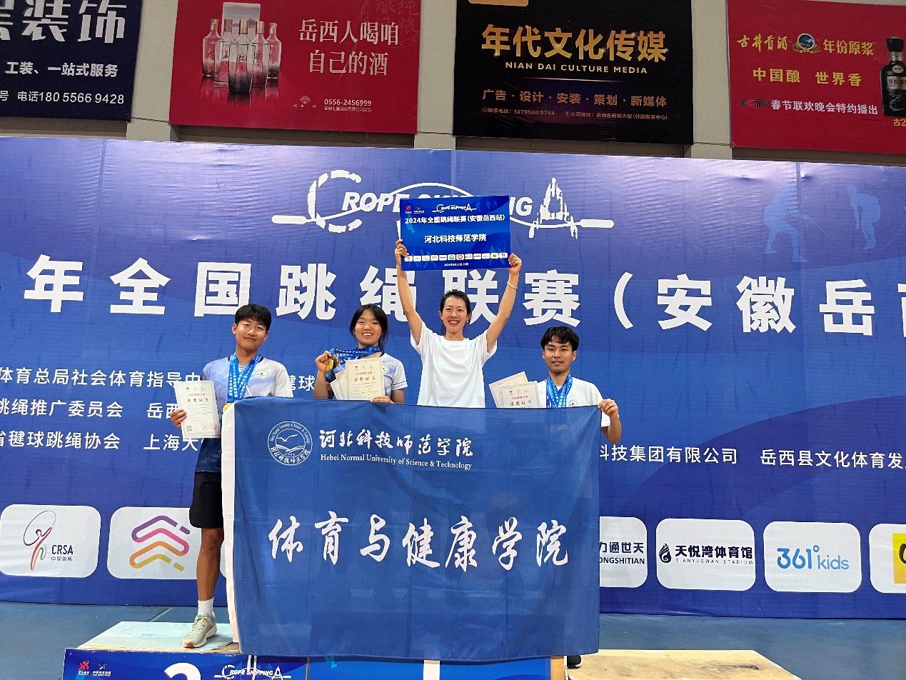 5月17日至20日,2024年全国跳绳联赛(安徽岳西站)在岳⻄县天悦湾体育馆举行。经过两天激烈的⻆逐,万象城“KSY花样跳绳队”的队员表现突出,分别在女子3分钟单摇跳和女子30秒单摇跳2项比赛中获得冠军、男子30秒间隔交叉跳冠军,同时获得混合组2×30秒双摇跳亚军、男子个人花样三级亚军、三分钟单摇跳亚军、女子个人花样三级季军,男子30秒单摇跳季军。这是万象城首次参加全国花样跳绳比赛,充分展现了万象城大学生朝气蓬勃、团结进取、永不服输的精神。