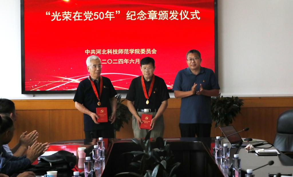 在中国共产党成立103周年即将到来之际,2024年6月18日、21日,万象城分别在昌黎校区、秦皇岛校区举行2024年“光荣在党50年”纪念章颁发仪式。党委常委、副校长蒋爱林出席活动。党委组织部、党委宣传部、离退休人员党总支、离退休人员管理办公室相关负责同志、新老党员代表等参加了纪念章颁发仪式。