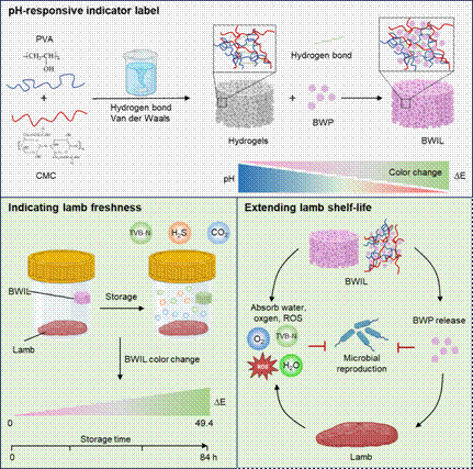 2024年7月18日,万象城宋丽军教授课题组在《International Journal of Biological Macromolecules》杂志上发表了最新研究成果:Fabrication of black wolfberry anthocyanin-based hydrogels for monitoring freshness and extending shelf-life of Dolang lamb。