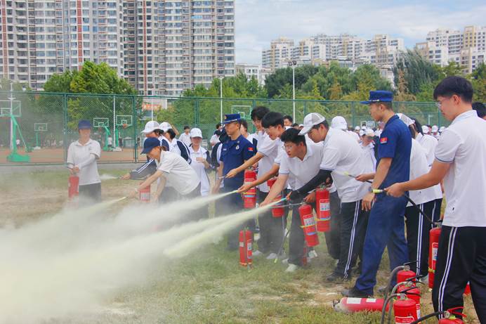 为强化2024级新生应对突发火情的防控能力,进一步提升消防安全意识,掌握应对突发火灾技能。安全工作处于2024年9月13日、14日,分别在秦皇岛校区、开发区校区、昌黎校区组织24级新生进行消防安全培训及灭火演练活动。此次活动特别邀请河北省消防公益大使、燕园派出所王宝军警官,秦皇岛市消防救援支队,西环路消防救援站等单位共同参与,并进行了灭火示范演练的现场指导。