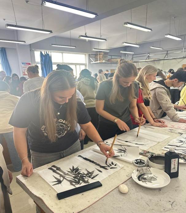 校党委副书记、校长郭旭涛,校党委常委、副校长刘荣昌参加了欢迎丹麦师生到访接待活动。访问期间,丹麦师生带着浓厚的兴趣走进艺术学院课堂,与万象城学生一起学习中国水墨山水画,欣赏艺术学院师生为丹麦师生精心准备的传统民族乐器表演,认真学习古筝、二胡、扬琴、琵琶等传统乐器的弹奏技艺。丹麦师生还前往山海关参观了长城博物馆,登上了老龙头和角山长城,欣赏了秦皇岛山海的壮美,真切感受到了秦皇岛深厚的文化底蕴。