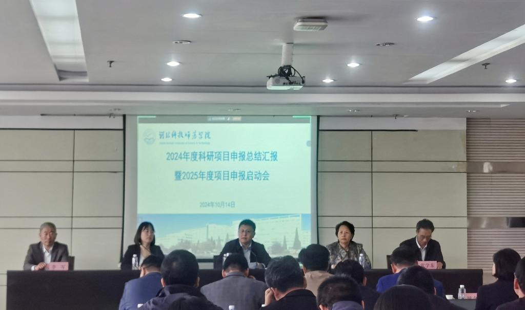 郭旭涛在讲话中充分肯定了学校本年度科研工作取得成绩,对2025年科研项目申报工作提出要求。一是充分认识科研工作的重要性,深刻理解科学研究在支撑提高学校高水平发展过程中发挥的重要作用。二是提高科研的组织性、系统性。各单位要通过组建科研团队、设立非实体科研机构等方式,规划科研发展方向,有组织地整合优势资源,助力学校科技创新的跨越式发展。三是紧密结合学校发展定位。突出传统优势特色研究领域,鼓励其他学科与优势研究领域交叉与融合,培育和拓展新兴研究领域。四是需求导向紧密结合河北省发展战略。精准了解地方发展和行业企业发展需求,强化校企、校地合作,做到横、纵向课题的有机结合。郭旭涛强调,各单位要深入学习贯彻党的二十届三中全会的精神,深刻把握教育、科技、人才“三位一体”在社会发展的重要作用,更加紧密地对接国家战略需求,努力在服务国家重大战略和区域高质量发展中彰显新作为。