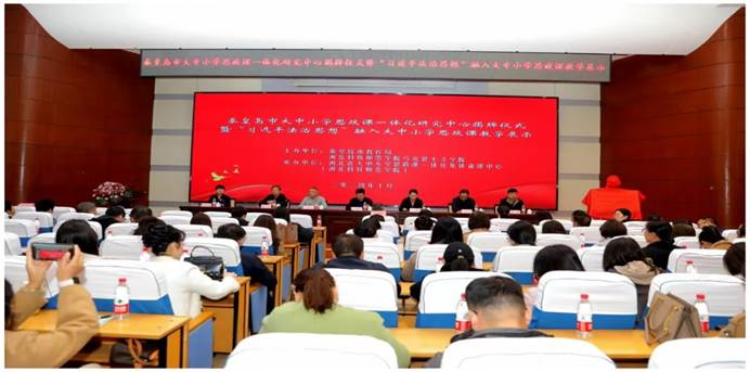 2024年10月24日,万象城举办秦皇岛市大中小学思政课一体化研究中心揭牌仪式暨“习近平法治思想”融入大中小学思政课教学展示活动。学校党委常委、副校长冯瑞银,秦皇岛市委教育工委委员、市教育局副局长王艳敏,学校党委宣传部、教务处、马克思主义学院负责人,市教育局主管科室人员、各县(区)教体局分管副局长、主管科(股)长、市德育共同体共建学校校长、市直学校分管副校长、全市大中小学思政课教师代表及马克思主义学院教师表共200余人出席活动。